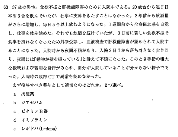 また、アルコール多飲歴のある人はビタミンB群の欠乏リスクも高いため、症状がなくても予防的に投与した方がいい。