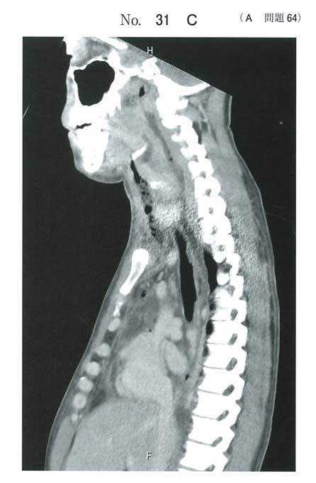 深頸部膿瘍からの縦隔炎でしょうね。抗生剤+ドレナージです。