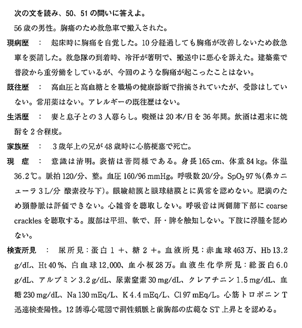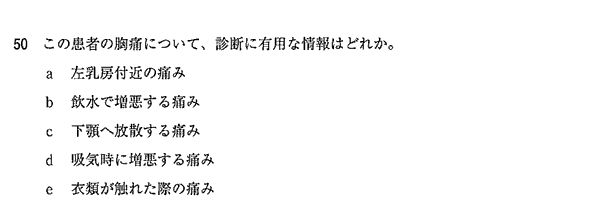 amiに陥っているかの確認で前胸部痛は聞くだろうと思いました。