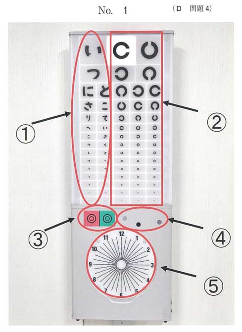 【解説】いわゆる字づまり視力表です。メーカーによって(特に③~⑤)の