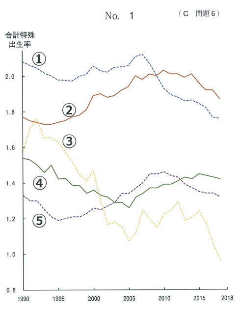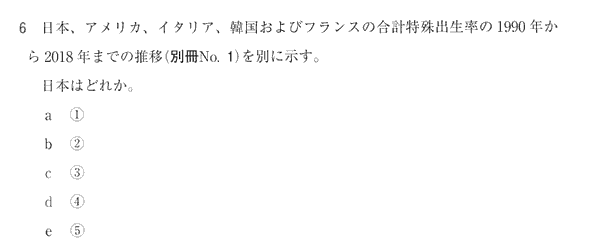 高橋先生が日本の合計特殊出生率は2005年を境に上昇に転じて、今は1.4くらいって言ってた記憶があるので、dの④