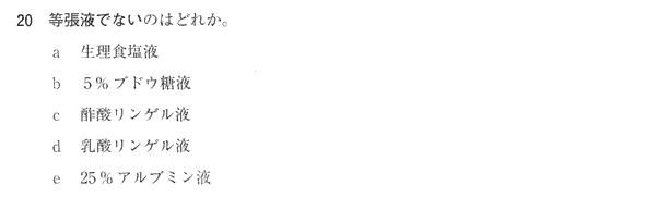 5%ブドウ等は”低張電解質”だけど等張液。しかし、ちょっと意地が悪い引っ掛け問題だなあ。むしろ臨床実習真面目にしてる人の方が間違えそう