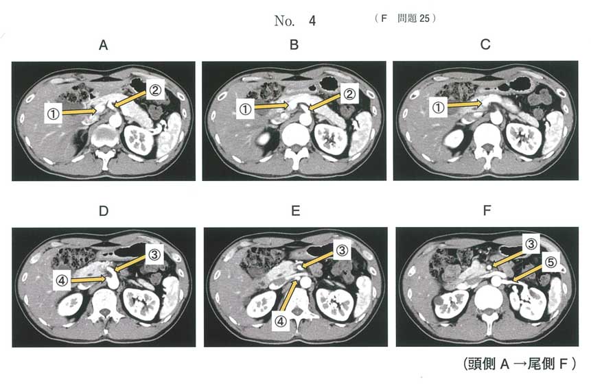 連続スライスだから、②はBの高さから出て上向き、③はDの高さから出て下向きに向かってるとわかる、別の血管よ