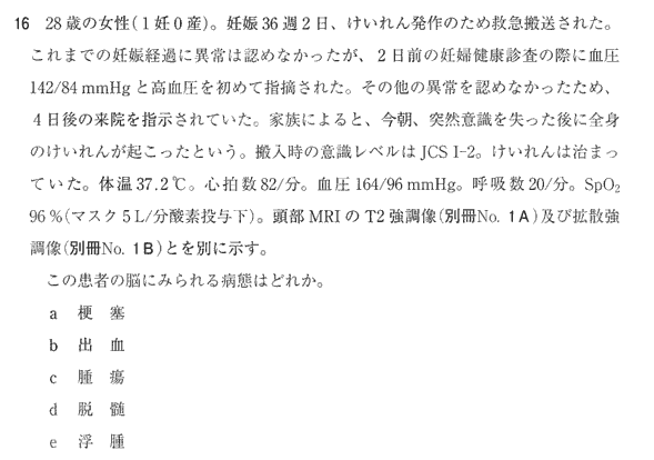 e PRES(可逆性後頭葉白質脳症。高血圧、子癇に伴うことも矛盾しない。)