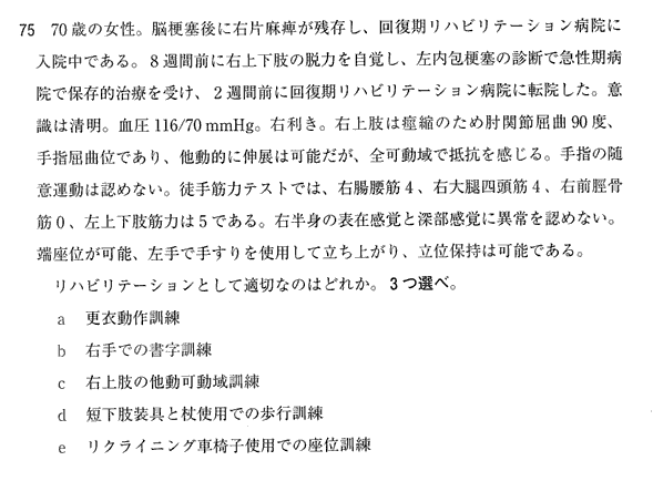 利き手は変える、拘縮予防で麻痺側動かす、立位できるので座位訓練不要、立てるので頑張って歩かす、左手動かせるので更衣自立すると思えばacd