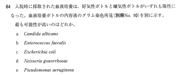 cです。泌尿器科医です。GNRにて大腸菌が正解です。