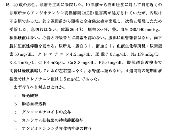 悪性腎硬化症だと考えられるのでカルシウム拮抗薬かと
