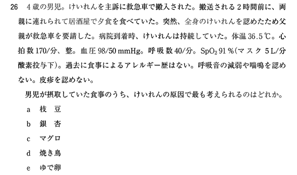確か何年か前にメック模試で銀杏中毒の問題が出題されていました。