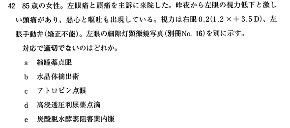 d × 強力な硝子体圧下降作用があるため、原発閉塞隅角症に有効である。