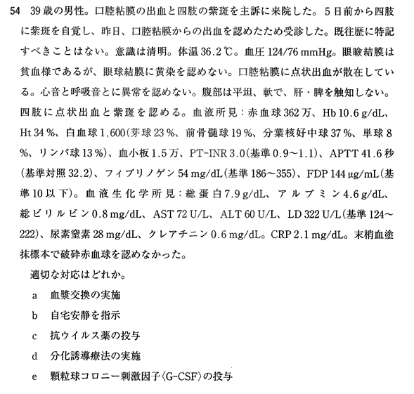 d。フィブリノーゲンが著減しているので、線溶型DIC。