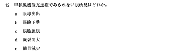 b 〇 眼瞼下垂は生じない。むしろ甲状腺ホルモンのカテコールアミン作用でMüller筋の異常収縮や、上眼瞼挙筋肥大緊張により、上眼瞼後退が生じる(Dalrymple徴候)。