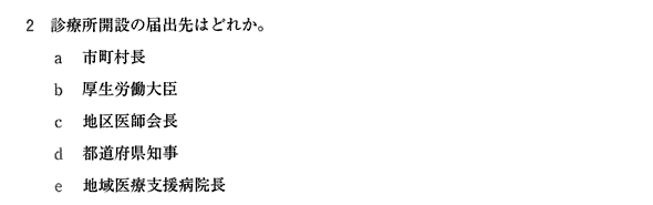 (正解)d.都道府県知事→ 診療所開設の届出先