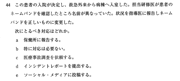 前回の国家試験でもインシデントレポートの提出が解答になる問題がありましたね