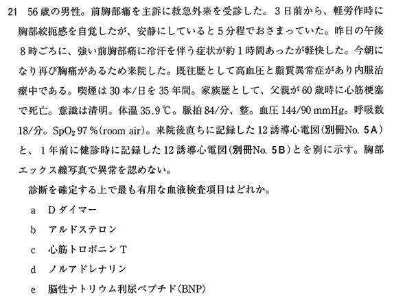 診断確定に最も有用な血液検査は心筋障害マーカー=トロポニン。