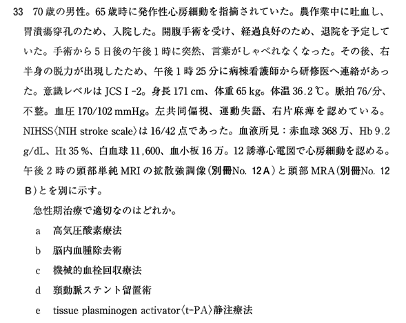 消化管出血後でありt-paは適応外。