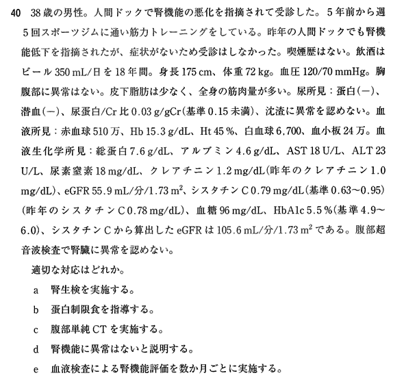 臨床でよく見るのはむしろ逆で90歳、30kgみたいな痩せ細った高齢者ではCr自体が低くeGFR100と見かけ上良く出るケースがあり騙されないように注意が必要。
