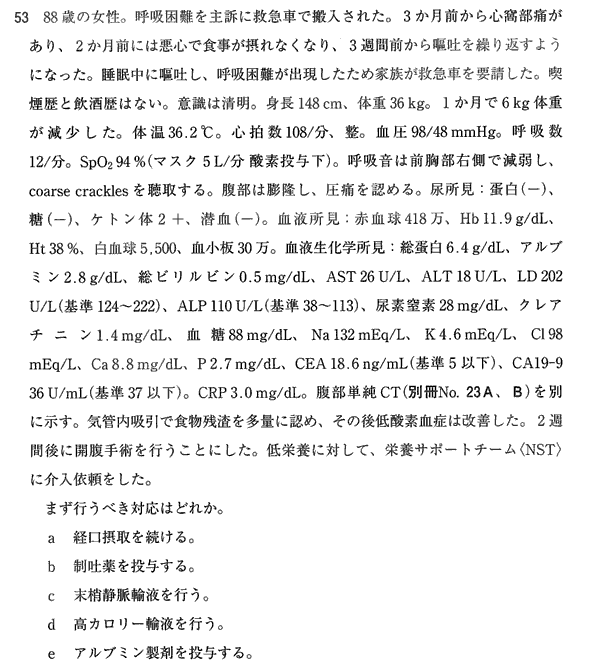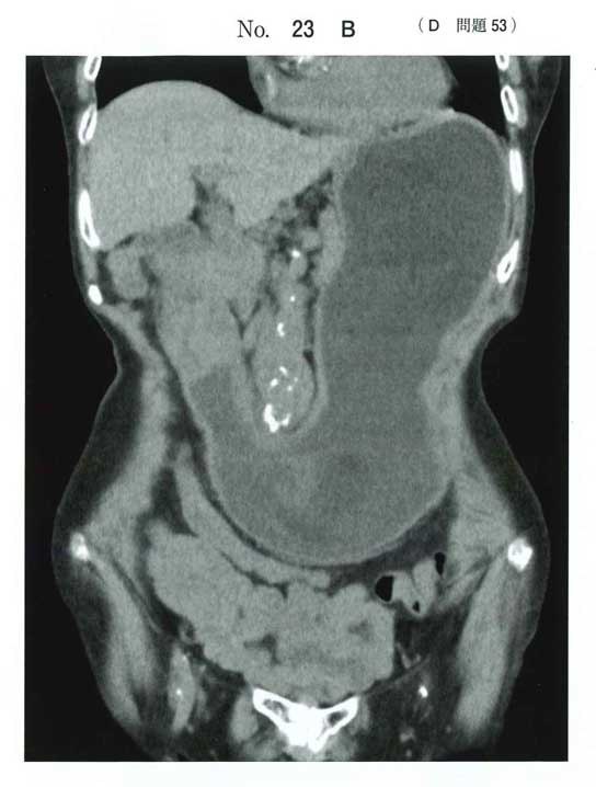 経過と腫瘍マーカー、CTで胃幽門部の壁肥厚から胃癌疑い。それで通過障害があるんですかね。