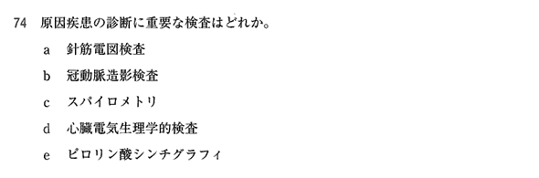 手根管症候群、心房細動、低電位、左室高輝度などヒントは十分だが冠危険因子、トロポニン陽性、M蛋白陰性(ALではない)などの罠もあって、ATTR心アミロイドーシスを思い付かないとbに飛ぶ仕様になってる。